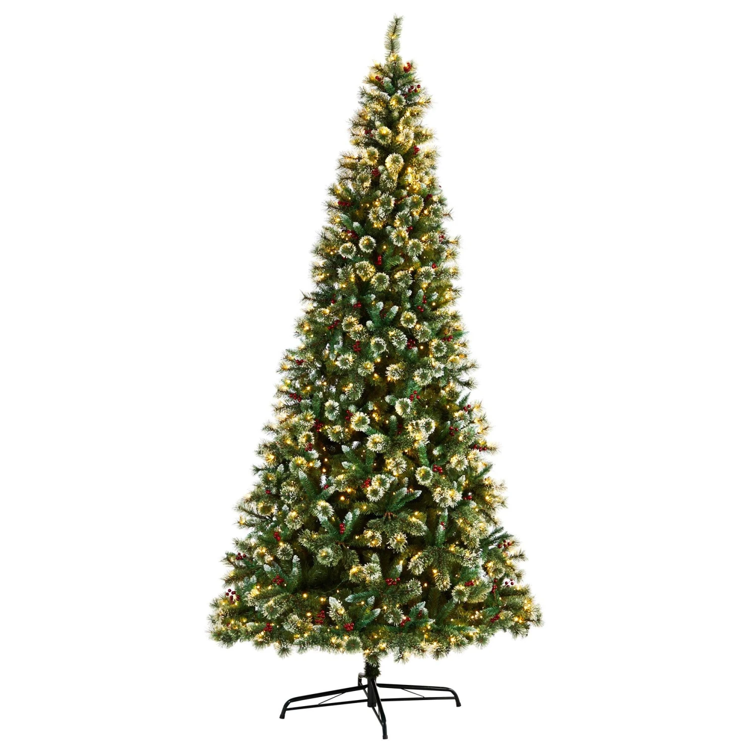 10’ Frosted Swiss Pine Artificial Christmas Tree With 850 Clear LED Lights And Berries
