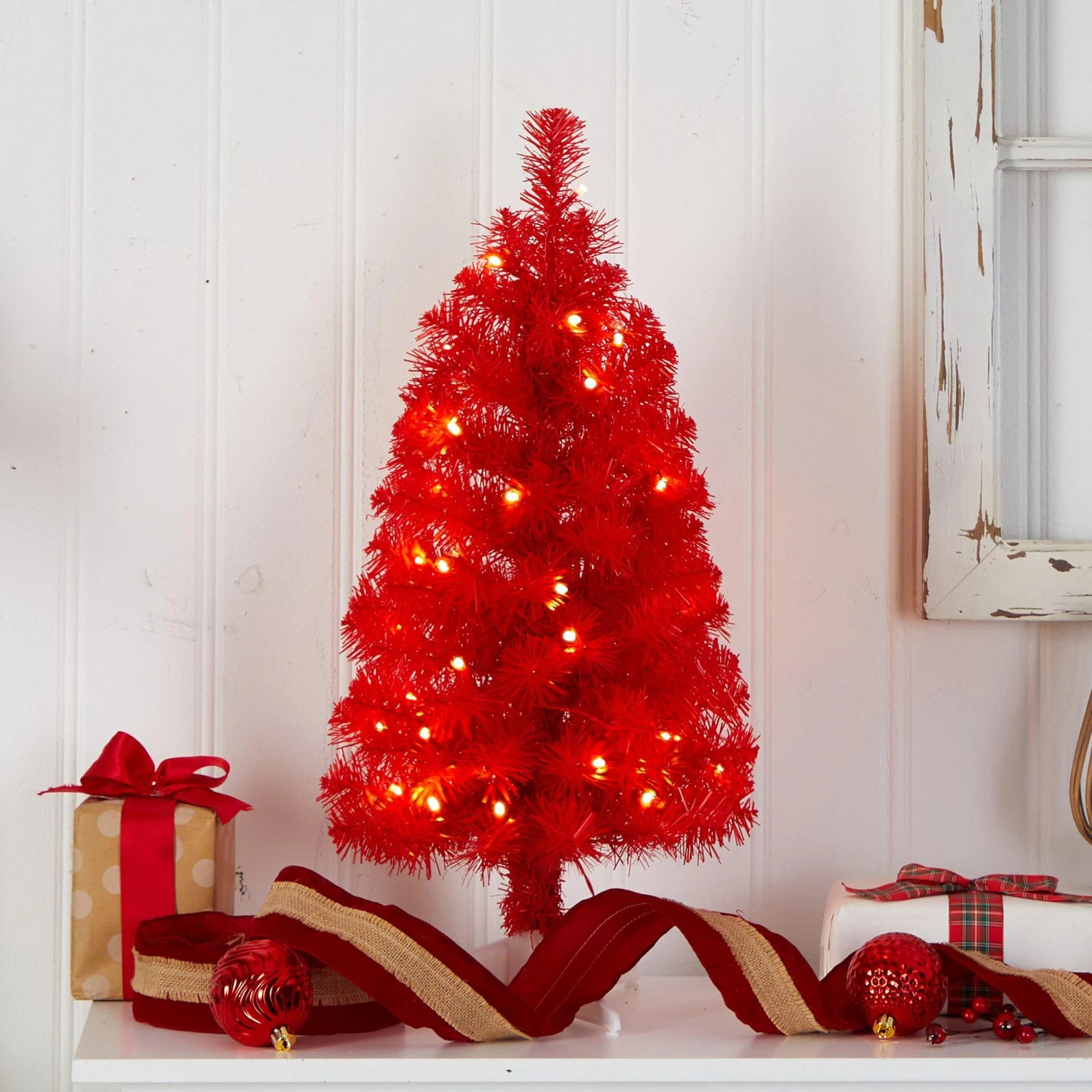 2’ Red Artificial Christmas Tree With 35 LED Lights And 72 Bendable Branches