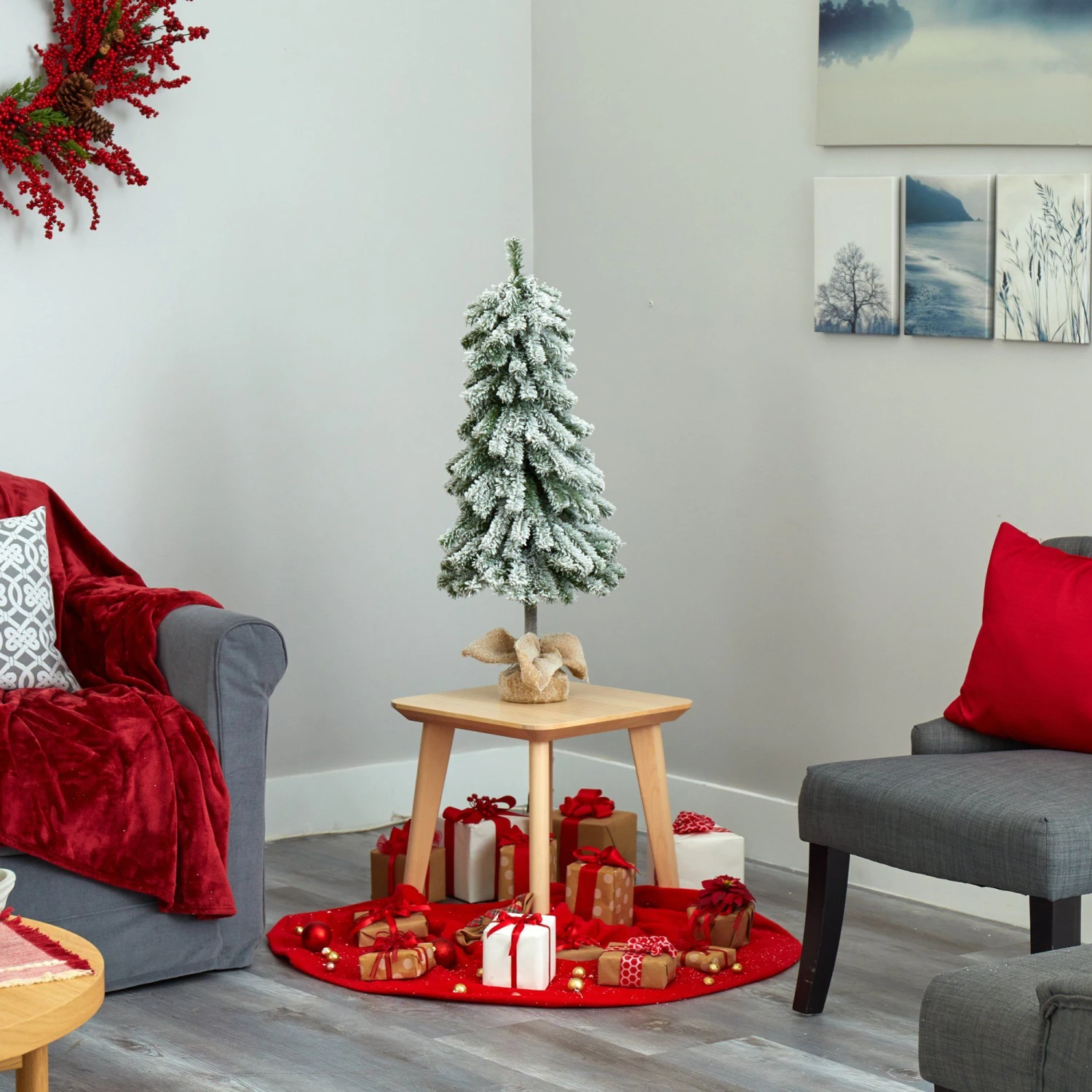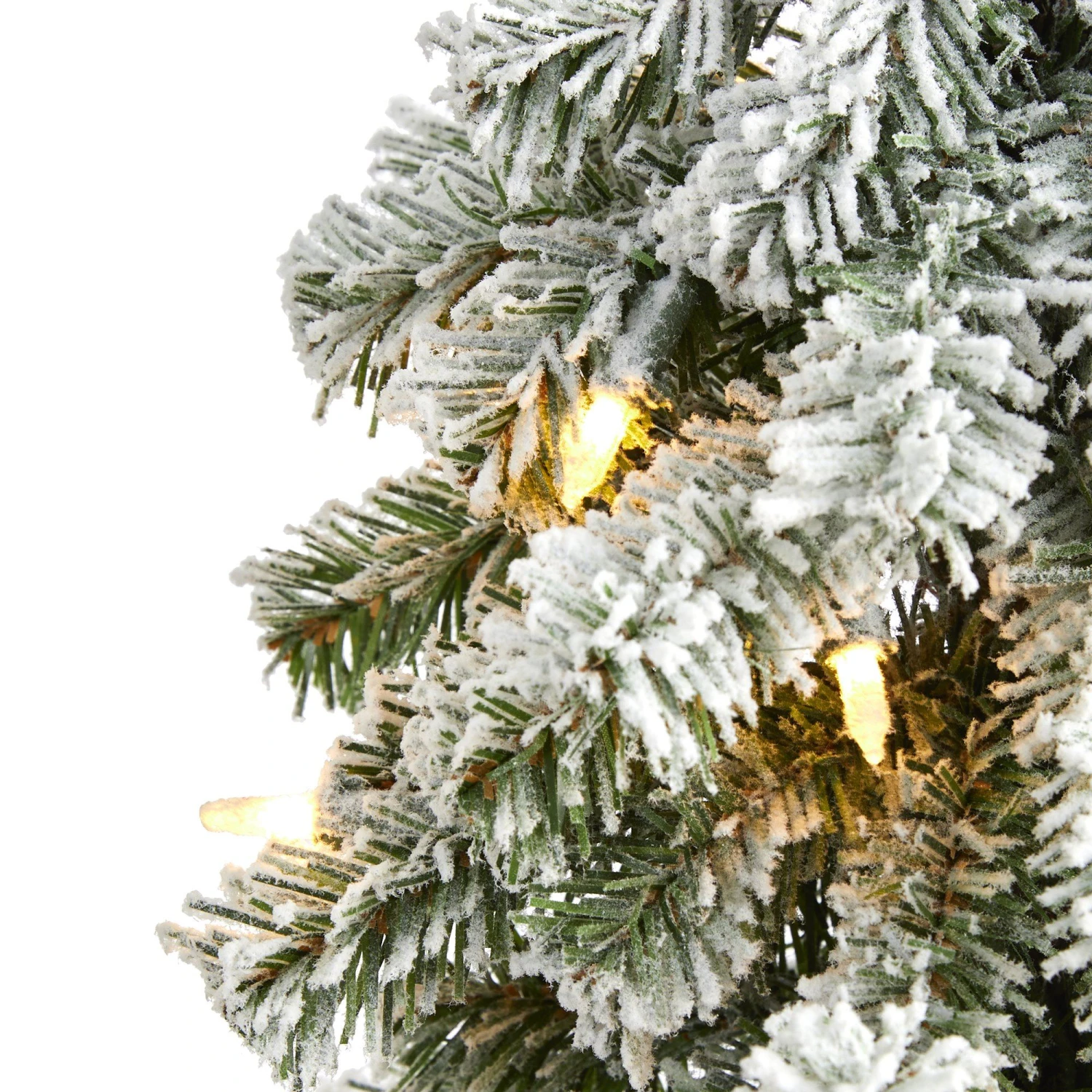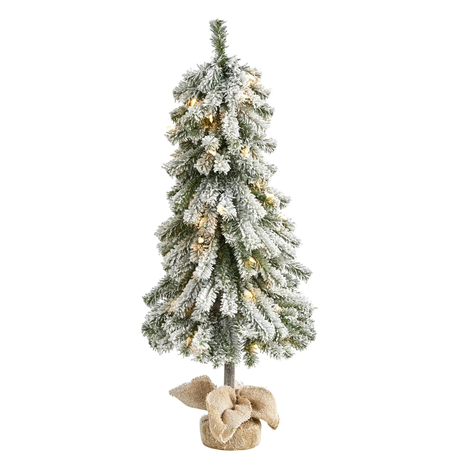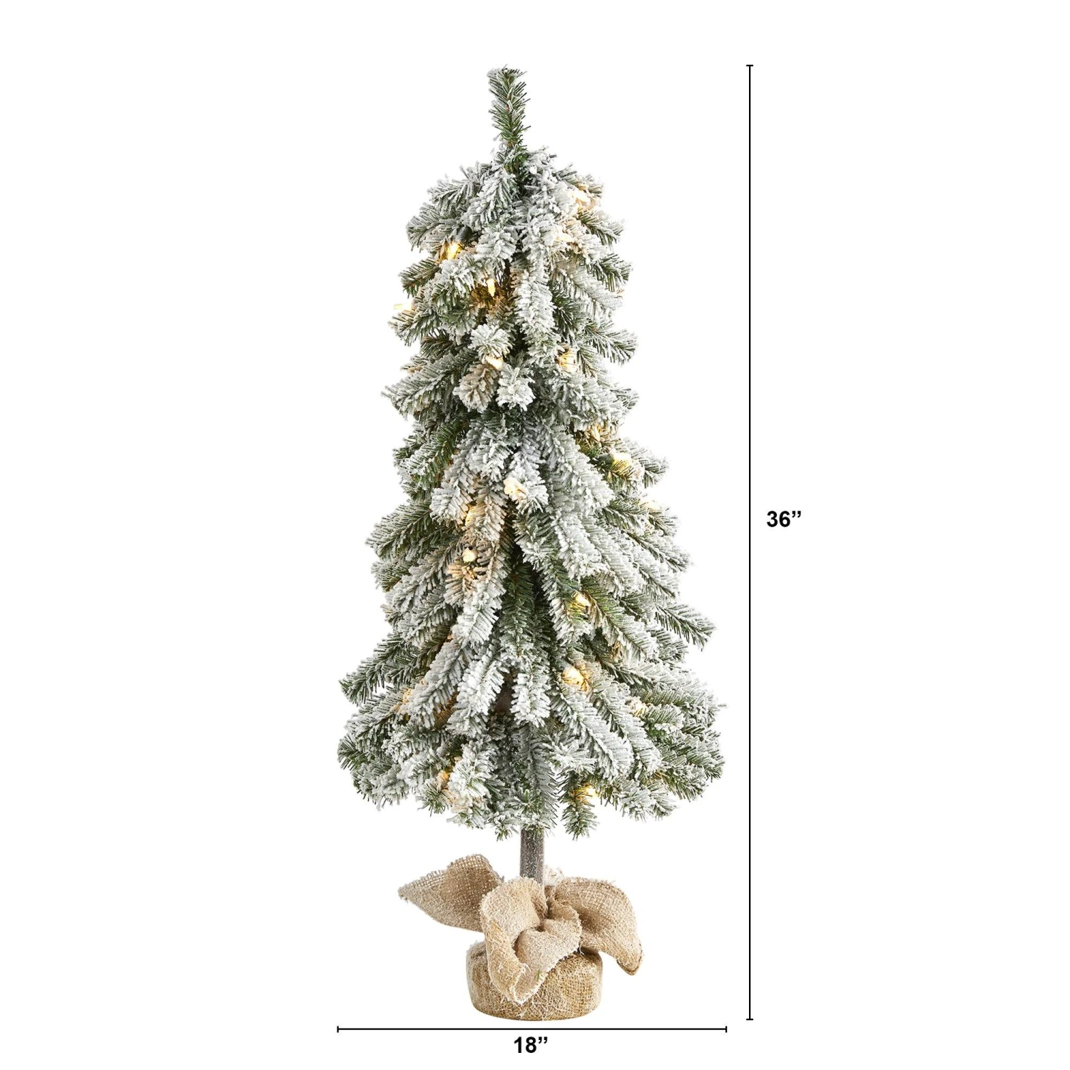 3’ Flocked Alpine Artificial Christmas Tree With 50 Lights, 177 Bendable Branches And A Burlap Planter
