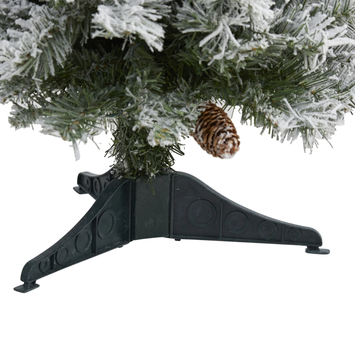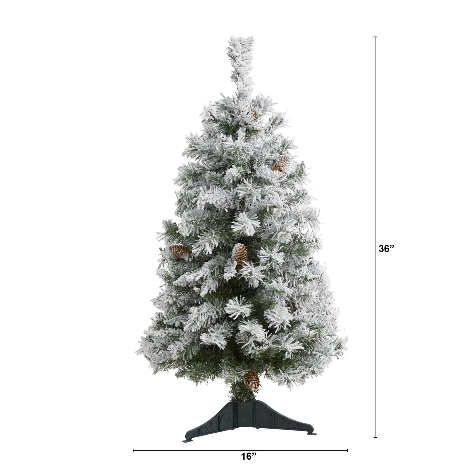 Complete a traditional Christmas setting this holiday with the help of this Flocked White River Mountain Pine Artificial Christmas Tree. Easy to set-up and entirely maintenance-free, this winter-inspired Christmas tree boasts a robust collection of realistic looking foliage consisting of 126 easy-to-bend branches for showcasing holiday accents and accented throughout with faux pinecones that look incredibly realistic. Finished with a light frosting of faux snow, it’s guaranteed to create a picturesque Christmas wherever displayed. Carefully stabilized on an accompanying stand, this versatile 3’ tall frosted artificial Christmas tree will undoubtedly transform any home or office into a joyous holiday setting for years to come.