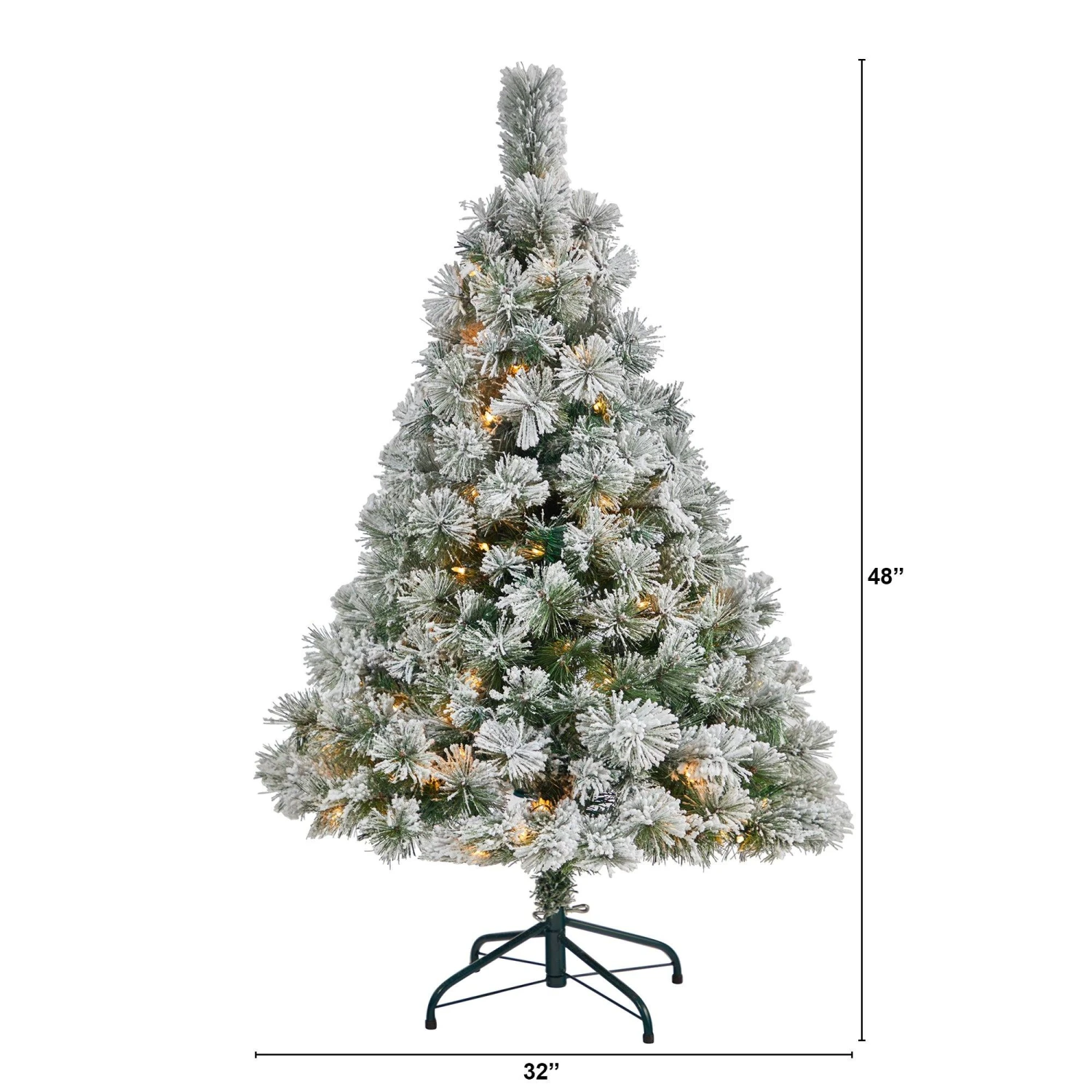 Transform your home into the ultimate winter wonderland with the help of this flocked artificial Christmas tree. Traditionally designed with a robust silhouette made up of 215 easy-to-bend branch tips for showcasing your favorite holiday ornaments, it comes fully flocked to evoke the feeling of freshly fallen snow. Arriving pre-strung with 100 clear LED lights to eliminate tangles and carefully stabilized on a metal stand, this flocked 4’ tall faux Christmas tree will easily become the focal point of any space all throughout the holiday season.