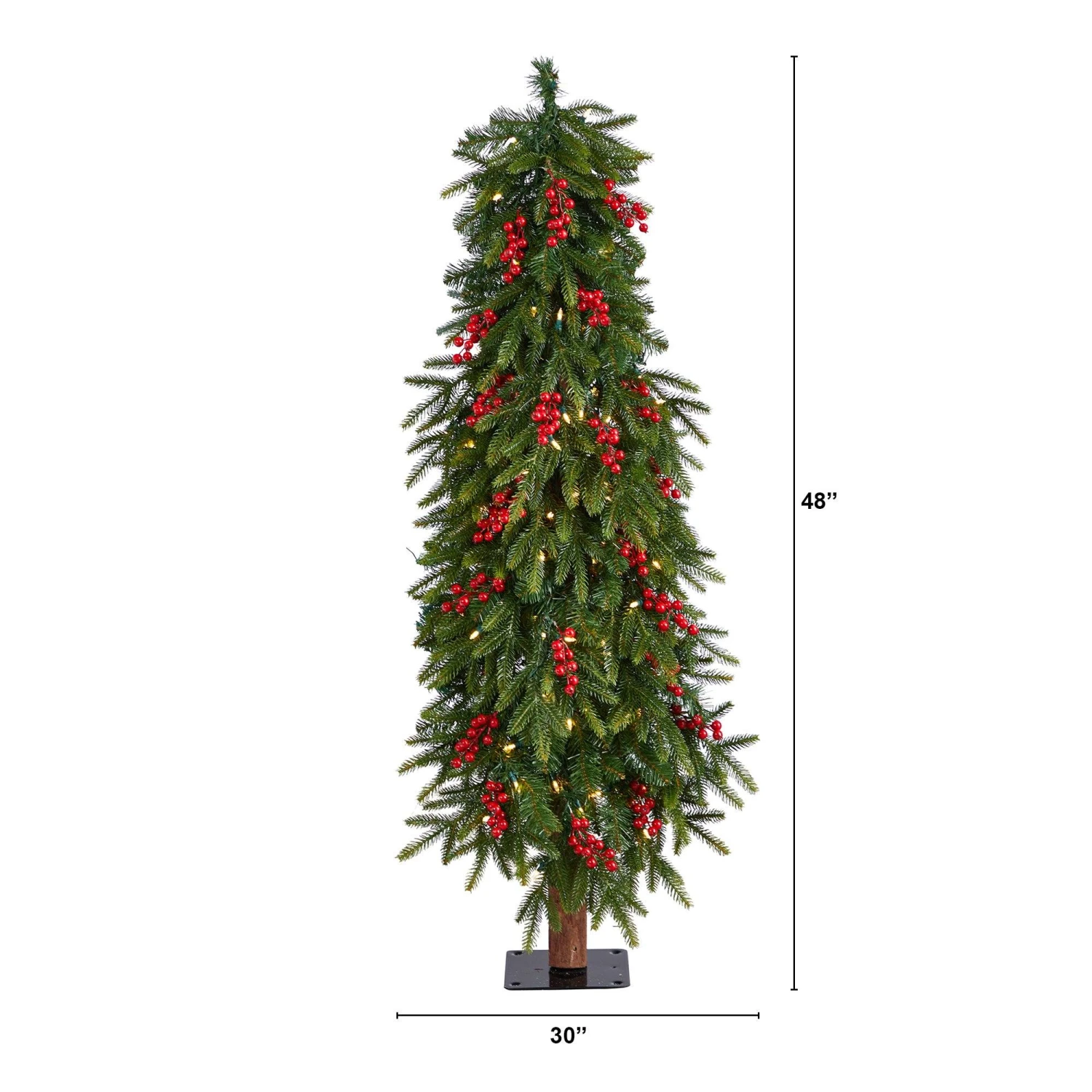 Get your home into the Christmas spirit this season with the help of this artificial Christmas tree. Easy to set-up and entirely maintenance-free, this realistic looking artificial Christmas tree boasts a traditional silhouette of seasonal foliage, made up of 171 bendable branch tips, handsomely accented throughout with faux holly berries that look incredibly lifelike. Arriving pre-strung with 100 color changing LED lights, it also features 8 different light options (including Twinkle, Bursts, and Fade) to create a true holiday glow wherever displayed. Carefully stabilized on a metal stand, this evergreen 48″ tall artificial Christmas tree will create a picture-perfect holiday setting, year after year.
