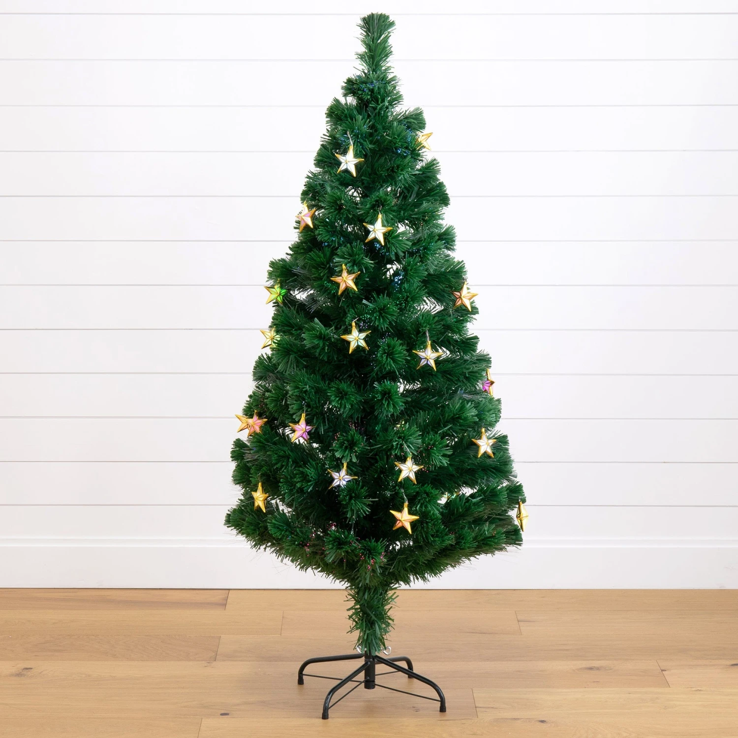 5′ Pre-Lit Fiber Optic Artificial Christmas Tree With 60 Colorful Star-Shaped LED Lights
