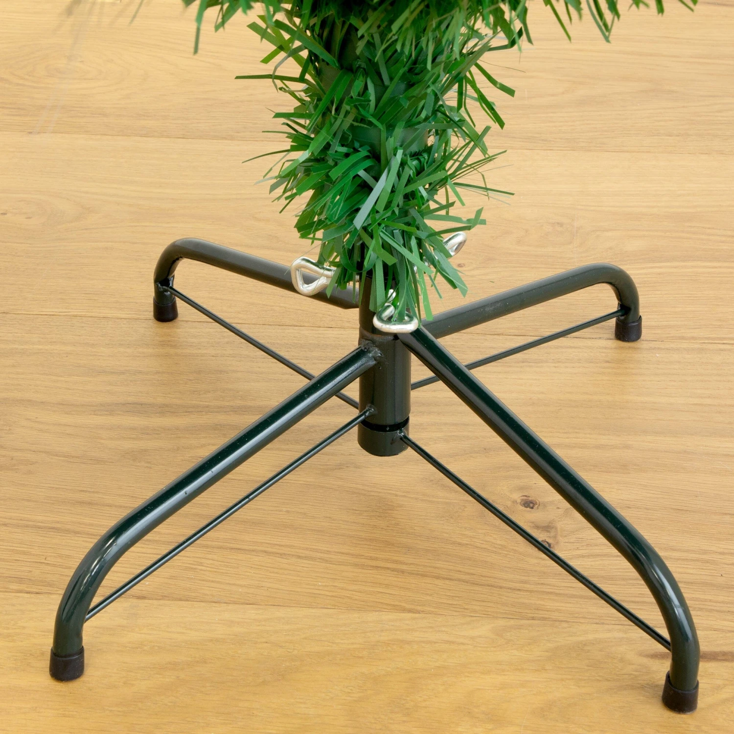 Make your home shine bright like a star with a lifelike artificial Christmas tree. Crafted from high-quality materials to ensure it keeps its’ charm year after year, it’s the perfect accent to bring your holiday decor together. The real treat is that it boasts star-shaped, energy-efficient LED lights that look like ornaments, but are better! These lights can switch hues, ranging from blue, yellow, purple, and more. The fiber optic lights have a dazzling appeal and have different light options: colorful and slow flash.The beauty of this tree is so impressive that you can save time and money by forgoing additional decorations – it stands spectacularly on its own. As it fills your space with Christmas magic, you’ll find it a stunning addition to any nook or entryway. At a compact 5′ and secured in a sturdy metal stand, it’s a versatile piece destined to bring life to your festive celebrations. And its compact size makes it a great space-saving piece and easy to store post-holiday season.