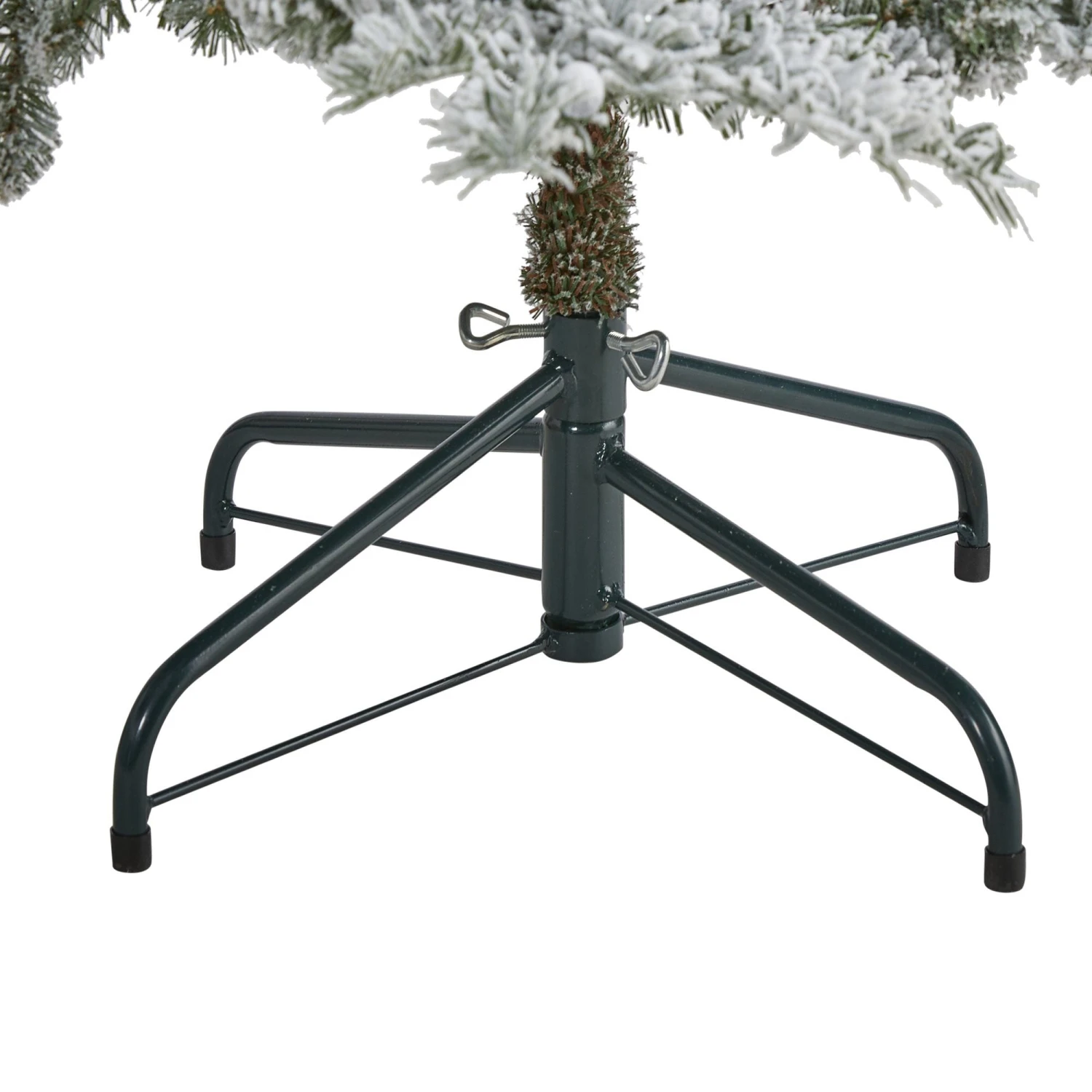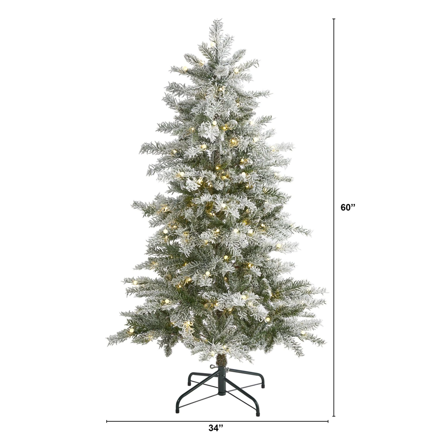 Create your own winter wonderland scene this holiday with the help of this flocked artificial Christmas tree. Completely maintenance-free, this winter-inspired artificial Christmas tree boasts a full and robust silhouette made up of 433 easy-to-bend branches to showcase all your favorite holiday ornaments, all beautifully flocked in a winter coating of faux snow to evoke the impression of freshly fallen snow. Arriving pre-strung with 150 clear LED lights to eliminate unsightly tangles and carefully stabilized on a metal stand, this snowy 5’ artificial Christmas tree will undoubtedly transform your holiday decor, year after year.