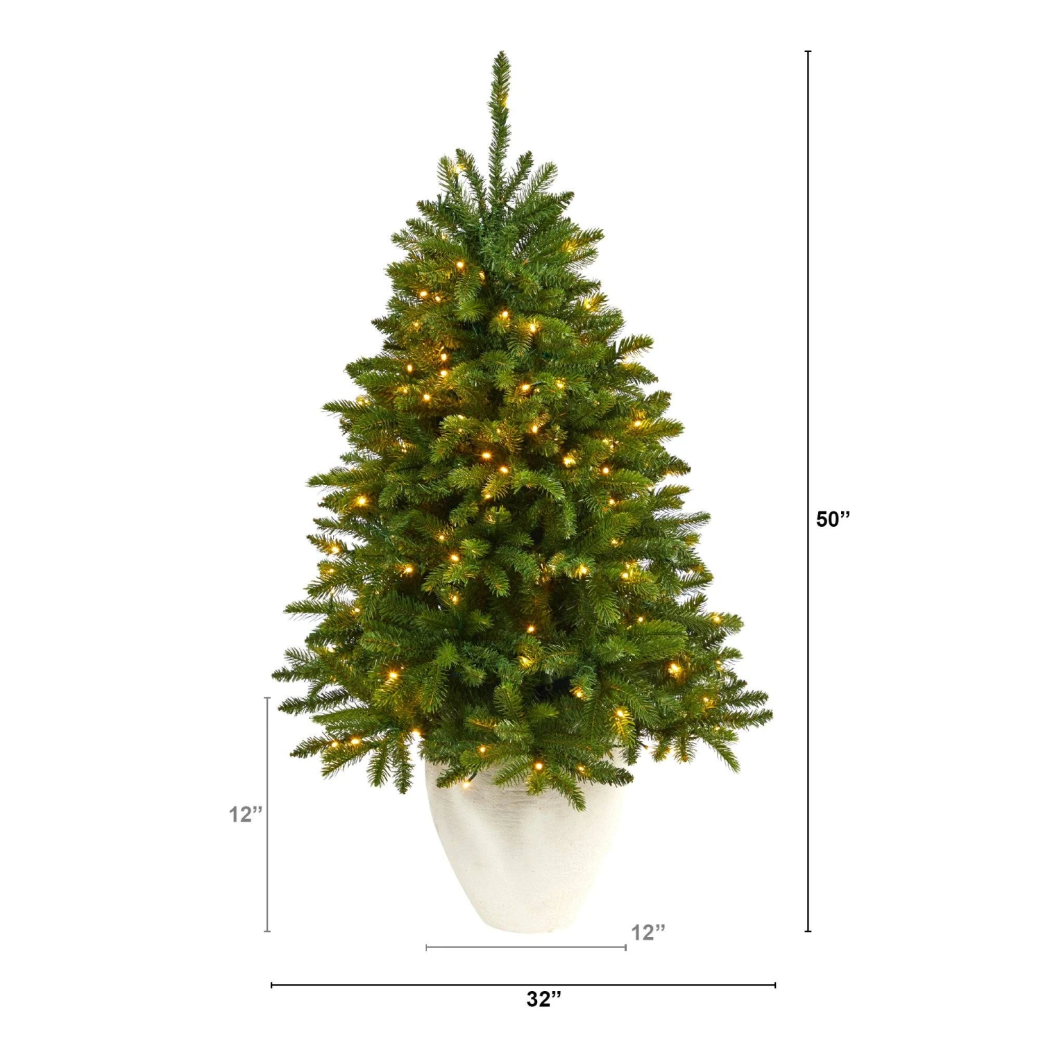 50” Sierra Spruce “Natural Look” Artificial Christmas Tree With 150 Clear LED Lights In White Planter