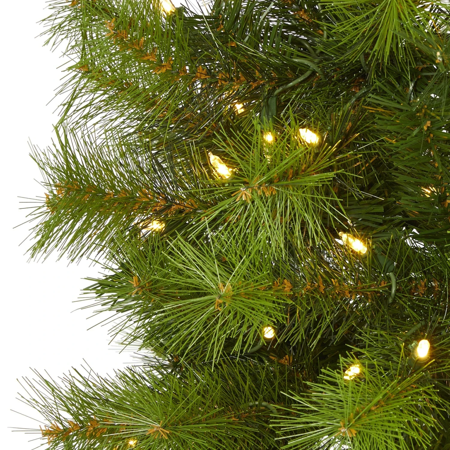 8’ Slim Green Mountain Pine Artificial Christmas Tree With 400 Clear LED Lights