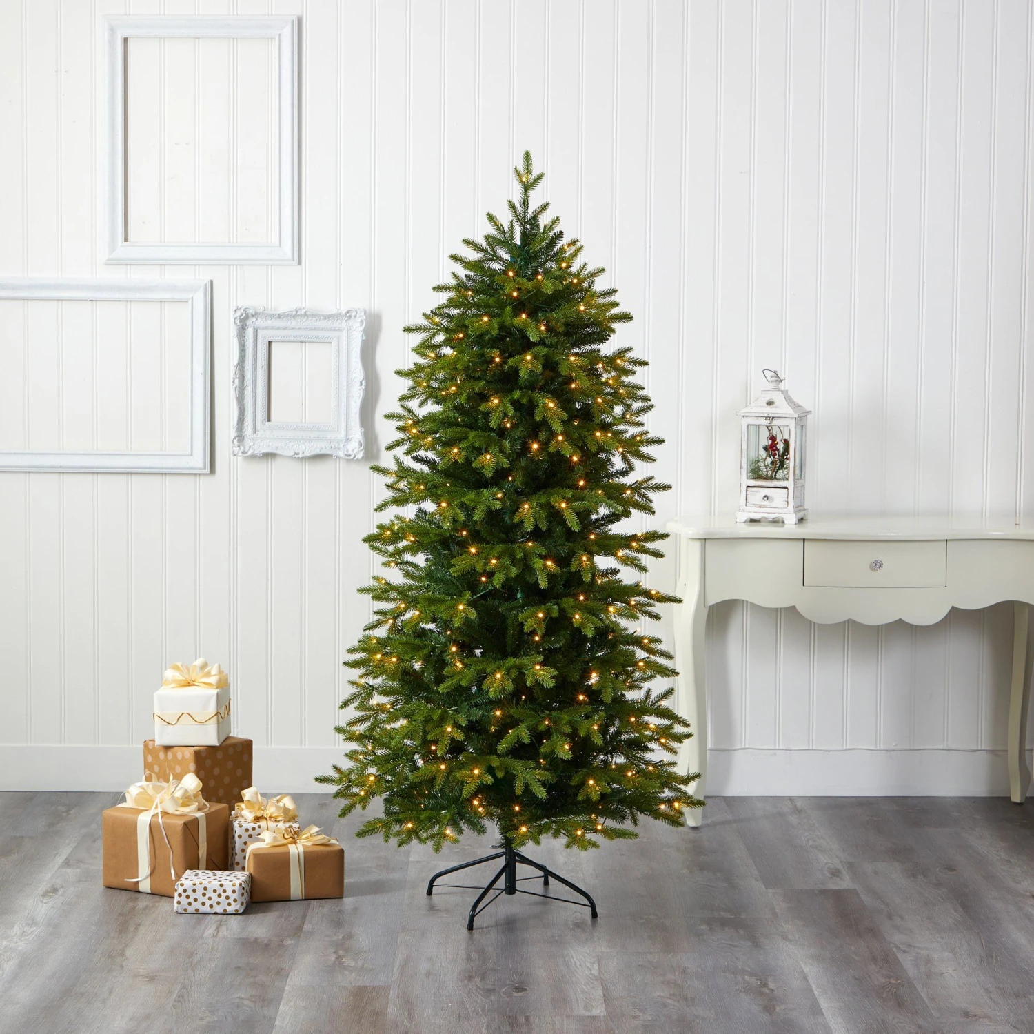 6’ Belgium Fir “Natural Look” Artificial Christmas Tree With 300 Clear LED Lights