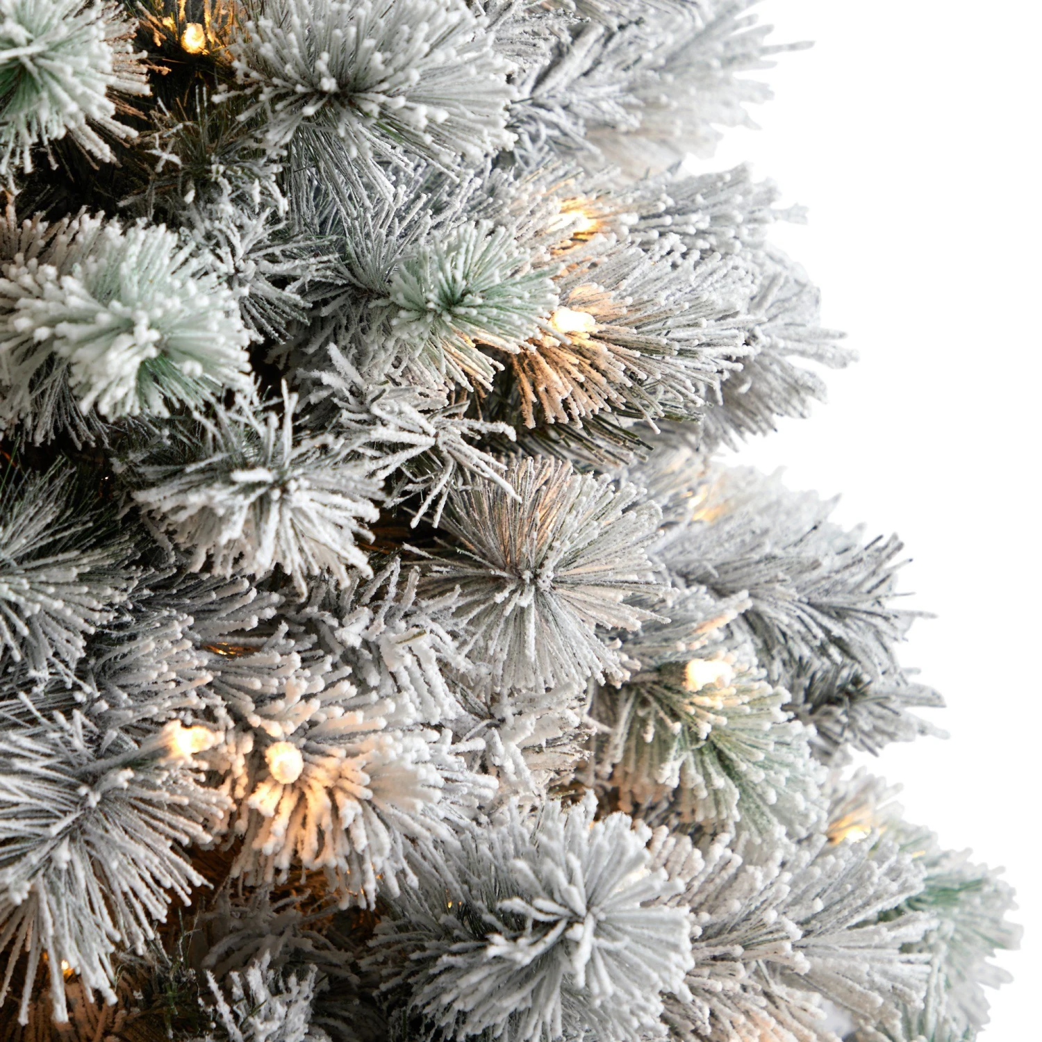 6’ Flocked Oregon Pine Artificial Christmas Tree With 300 Clear Lights And 551 Bendable Branches