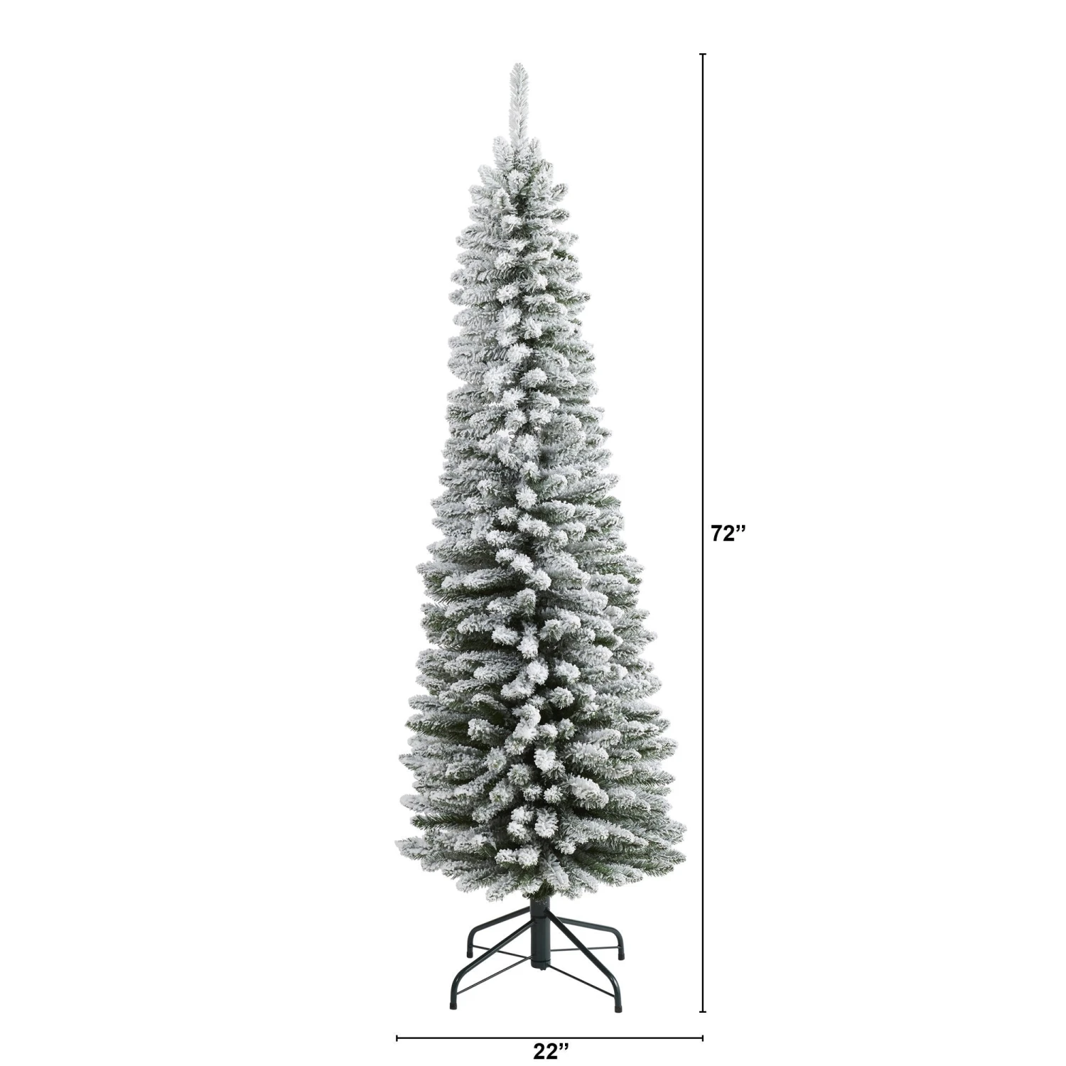 6’ Flocked Pencil Artificial Christmas Tree With 438 Bendable Branches