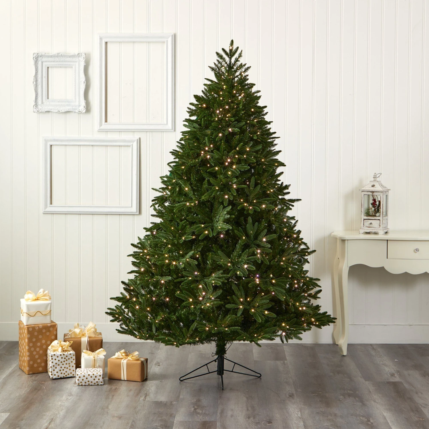 Get your home into the Christmas spirit this season with the help of this artificial Christmas tree. Easy to set-up and entirely maintenance-free, this realistic looking artificial Christmas tree boasts a full-figured, traditional silhouette of seasonal foliage, made up of 1796 bendable branch tips, perfect for accenting with all your favorite holiday ornaments. Arriving pre-strung with 850 clear LED lights, it also features 8 different light options (including Twinkle, Bursts, and Fade) to create a true holiday glow wherever displayed. Carefully stabilized on a metal stand, this impressive 7’ tall artificial Christmas tree will create a picture-perfect holiday setting, year after year.