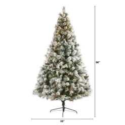 8’ Flocked Oregon Pine Artificial Christmas Tree With 500 Clear Lights And 1172 Bendable Branches