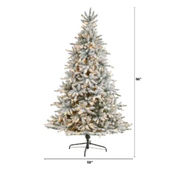 8’ Flocked North Carolina Fir Artificial Christmas Tree With 650 Warm White Lights And 2593 Branches