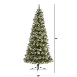 8’ Frosted Swiss Pine Artificial Christmas Tree With 550 Clear LED Lights And Berries