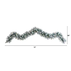 9’ Flocked Artificial Christmas Garland With 50 Warm White LED Lights