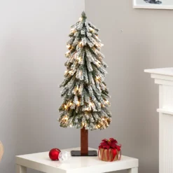 4’ Flocked Pencil Artificial Christmas Tree With 100 Clear Lights And 216 Bendable Branches