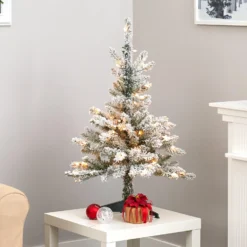 3’ Flocked Fraser Fir Artificial Christmas Tree With 200 Warm White Lights And 481 Bendable Branches