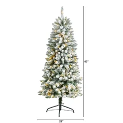5’ Slim Flocked Montreal Fir Christmas Tree With 150 Warm White LED Lights And 491 Bendable Branches