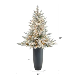 5’ Frosted Swiss Pine Artificial Christmas Tree With 200 Clear LED Lights And Berries