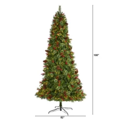 9β Norway Mixed Pine Artificial Christmas Tree With 650 Clear LED Lights, Pine Cones And Berries
