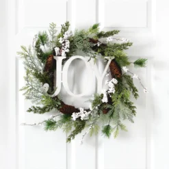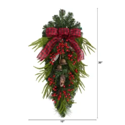 28” Holiday Winter Greenery, Berries And Plaid Bow Artificial Christmas Arrangement Home Décor