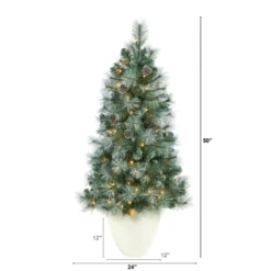 50β White Artificial Christmas Tree With 100 Clear LED Lights In Black Metal Planter