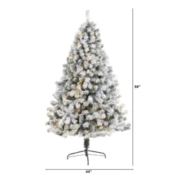 7′ Flocked West Virginia Fir Artificial Christmas Tree With 350 Clear LED Lights